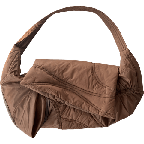 Since its launch during SS21, the Pillow Bag has become a key item within our range. Each season, we have introduced exclusive colourways, using solely deadstock material and recycled polyester wadding. In January 2023, we introduced a Pillow Bag series using Majotech’s WATER ZERO nylon, a sustainable alternative to fabric dyeing with a water consumption reduced by 99%.